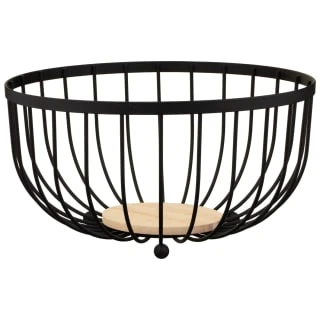 Black Fruit Basket with Wooden Base.